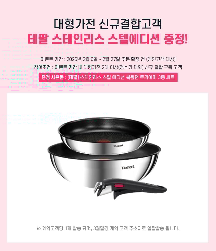 대형가전 2대 이상 결합 렌탈 시 테팔 스테인리스 스텔에디션 증정!